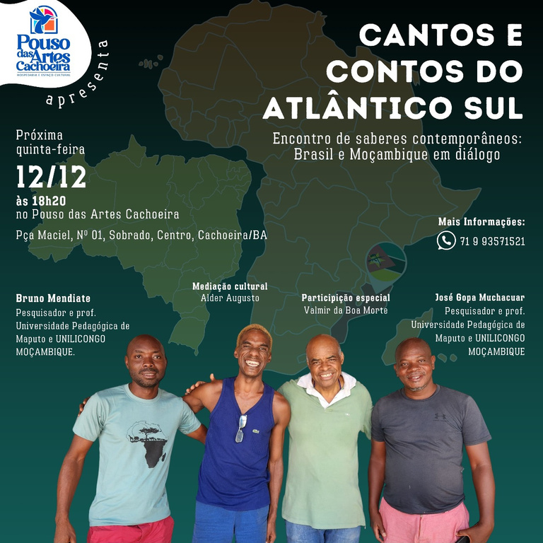 O evento “Cantos e Contos do Atlântico Sul: Encontros de Saberes – Brasil e Moçambique em Diálogo”, realizado no Pouso das Artes Cachoeira, foi um encontro potente entre culturas, histórias e saberes de dois lados do Atlântico.